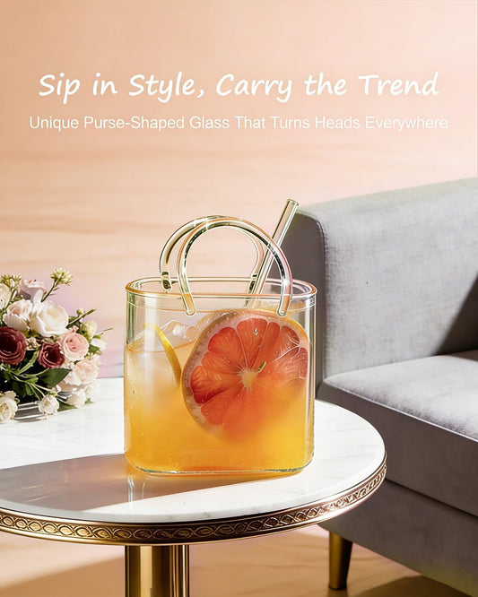 Purse Drinking Glass, Glass Purse for Drinks, Unique Wine Glasses with Straw, Decorative Fish Bowl Vase with Straw