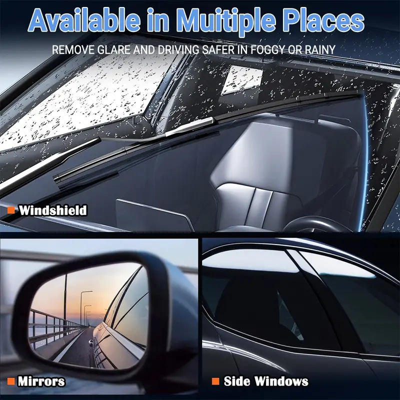It is safe for glass surfaces such as windshields, windows, and rearview mirrors. Not suitable for plastic lenses or aftermarket films.