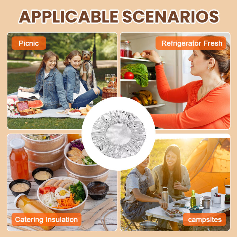Want to keep the food warm for a long time and not easy to cool down? This aluminum foil film insulation cover not only locks the temperature for a long time, but also can be heated in a microwave oven. It is strong and durable and can be recycled, making your dining experience more convenient!